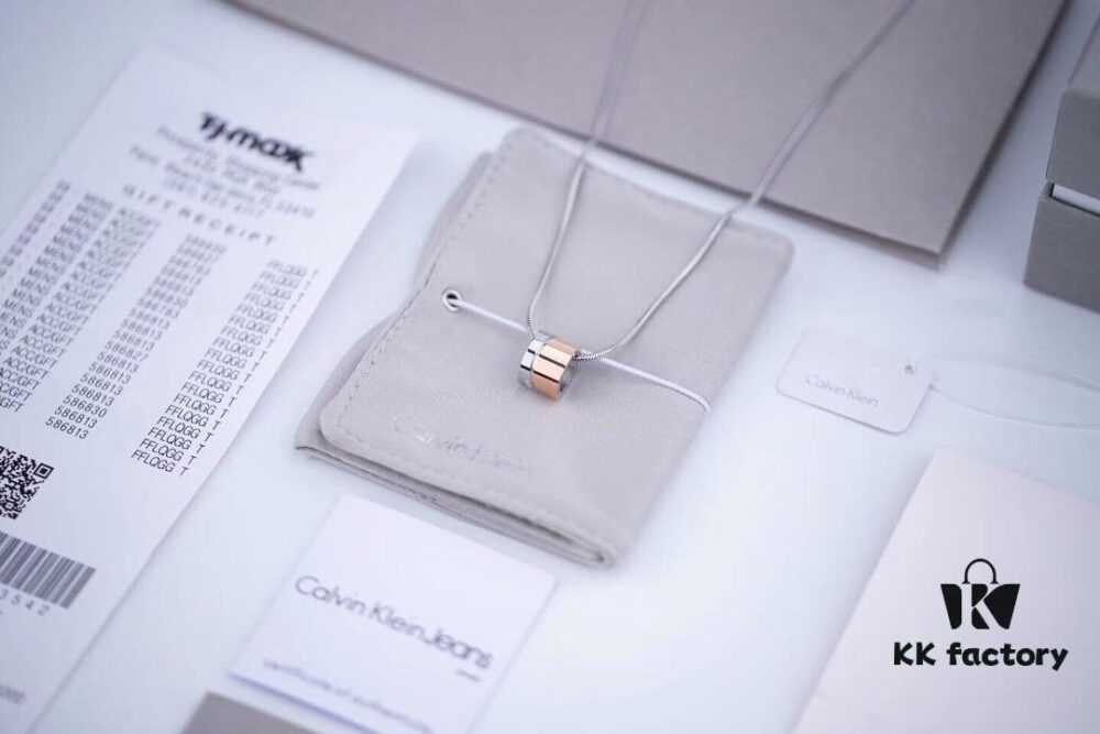 Calvin Klein CK Double Ring Necklace, White Gold and Rose Gold Plated Couple Necklace