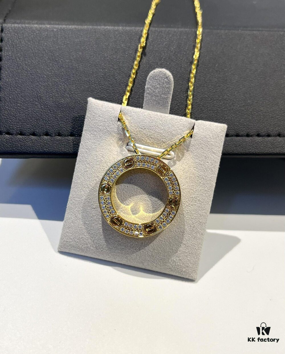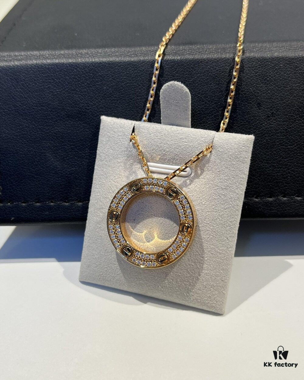 Kajia Love Series Full Diamond-Cut Large Pendant Necklace in White Gold Color