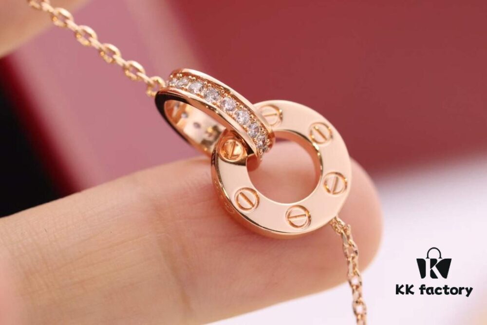 New Arrival 💗 Cartier Rose Gold Double Ring Full Diamond Round Pendant Necklace