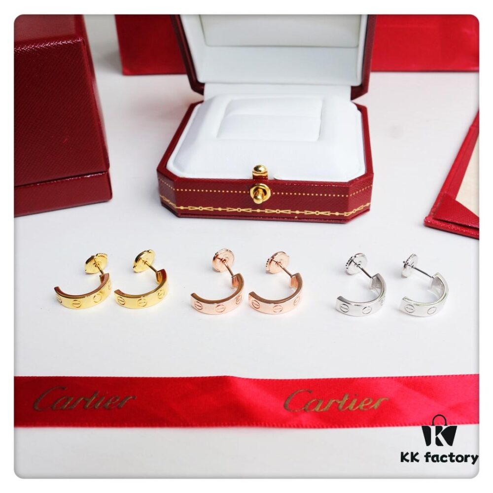 Cartier Love Earrings Studs, Rose Gold, White Gold, Yellow Gold, Original Saucer Backs, German Imported Silver with Thick Gold Plating