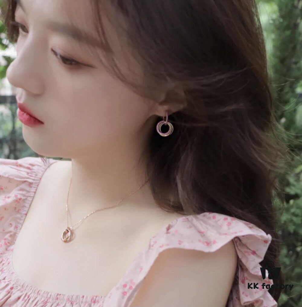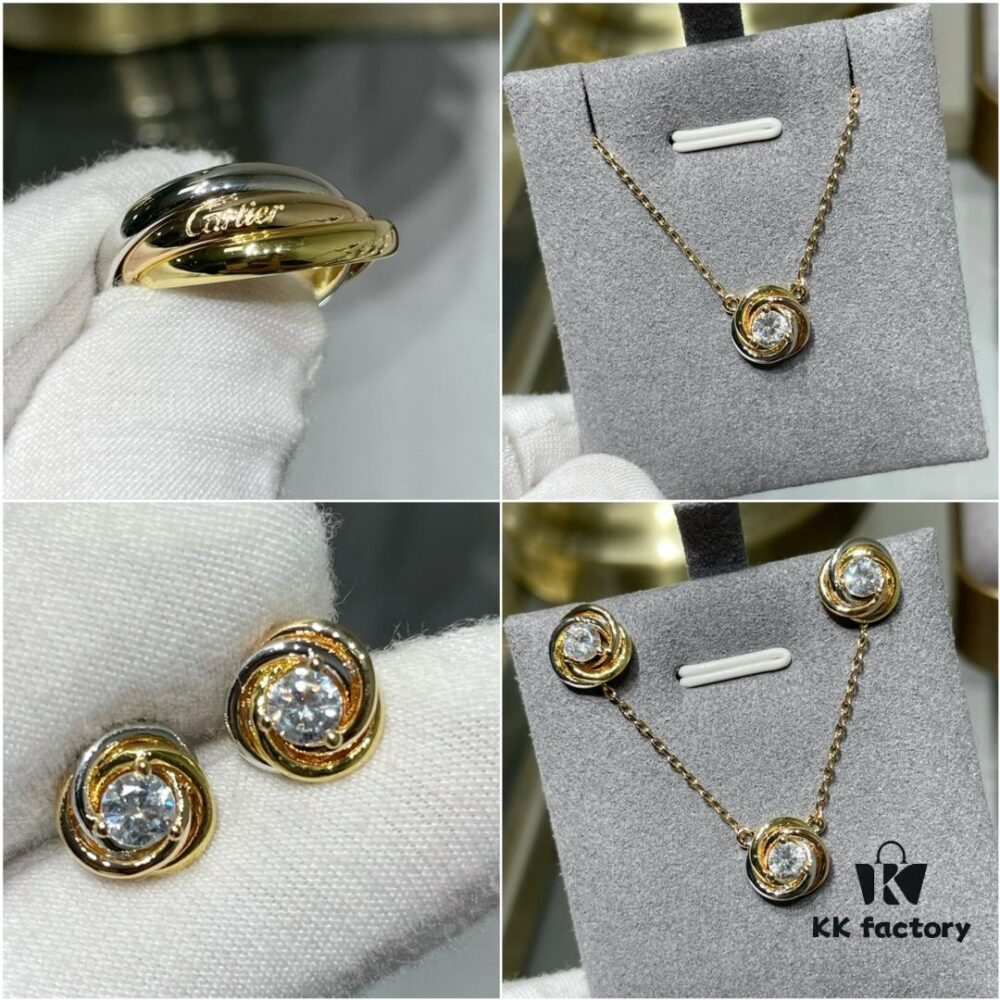 Cartier Pink Diamond Tricolor Trinity Necklace, S925 Sterling Silver, Premium Craftsmanship with Logo, Angel Pendant, Adjustable Chain 45cm