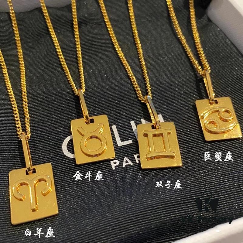 CELINE/Celine Trendy Minimalist Luxury Gold Zodiac Necklace Extremely Versatile