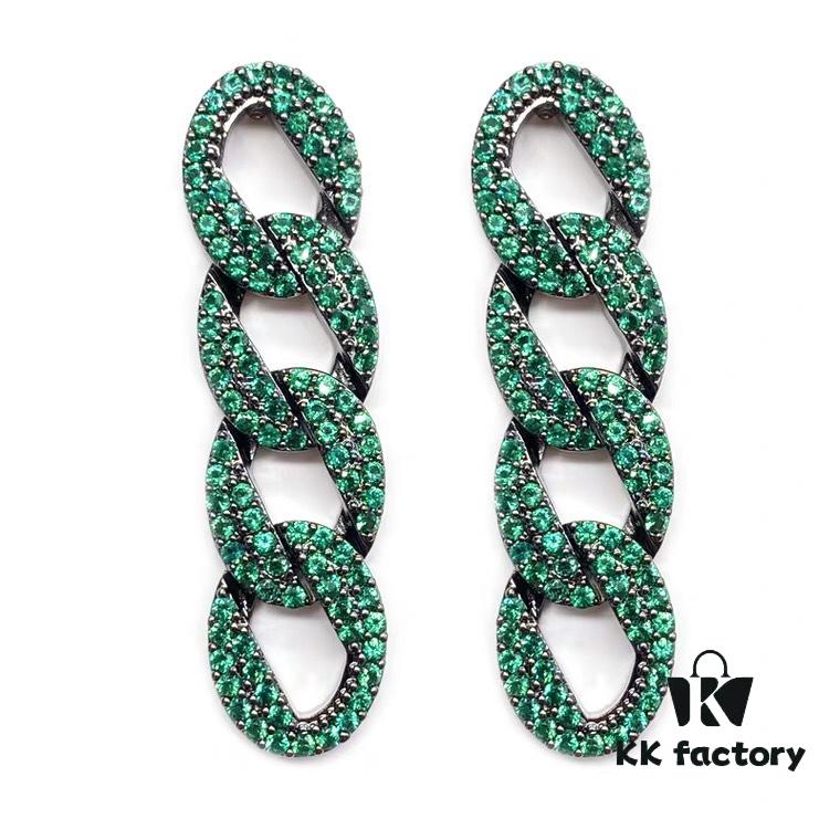 Celine-Inspired European and American High-End Micro-Pave Luxurious Colorful Geometric Chain Stud Earrings for Women with Silver Needle