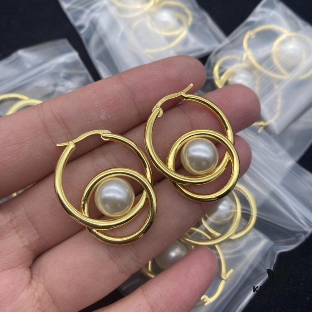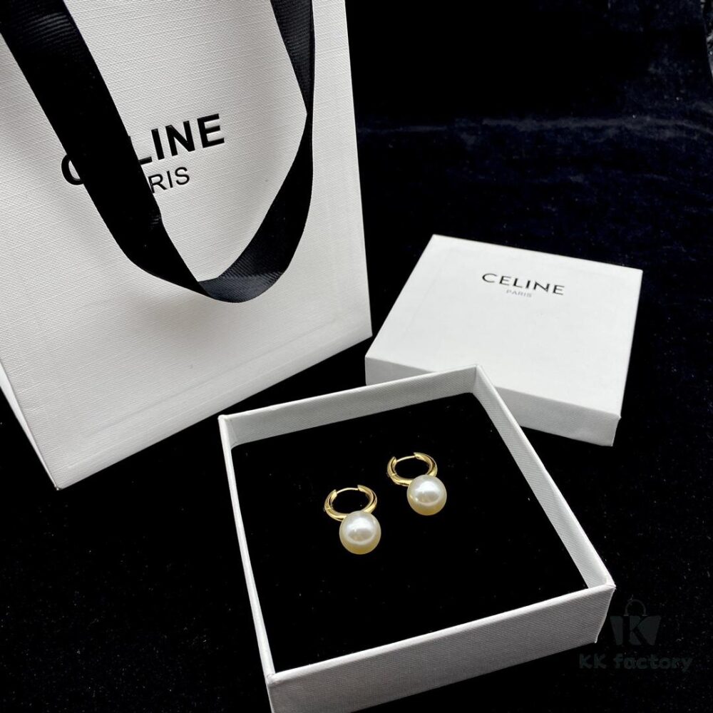 CELINE New Model Pearl Hoop Stud Earrings