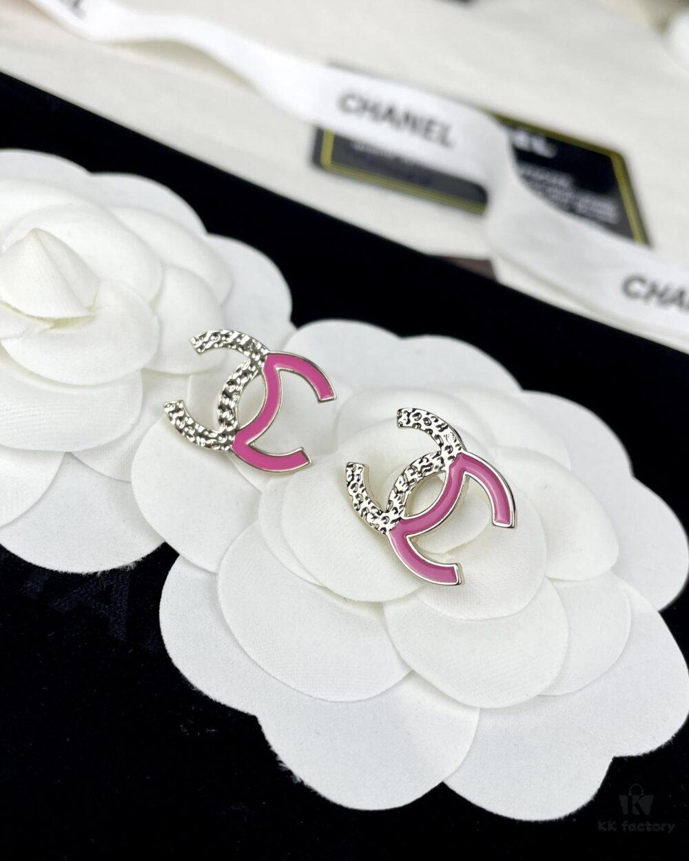 CHANE New 24C Pink Enamel Half-Gold Half-Pink Letter C Stud Earrings