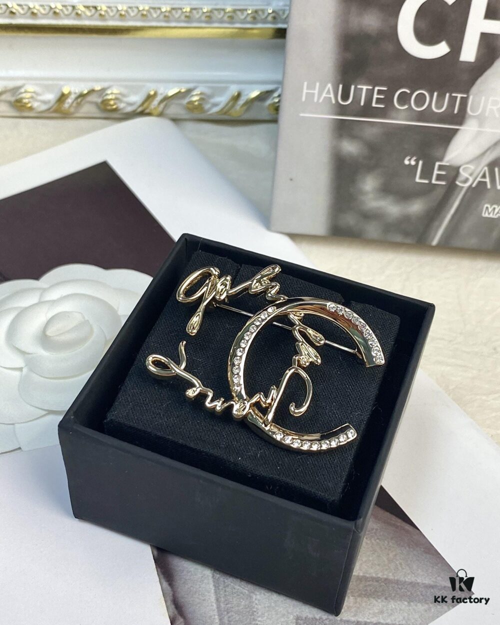 CHANE New Style Irregular Round Diamond Leaf Half-Diamond Letter Smooth Brooch