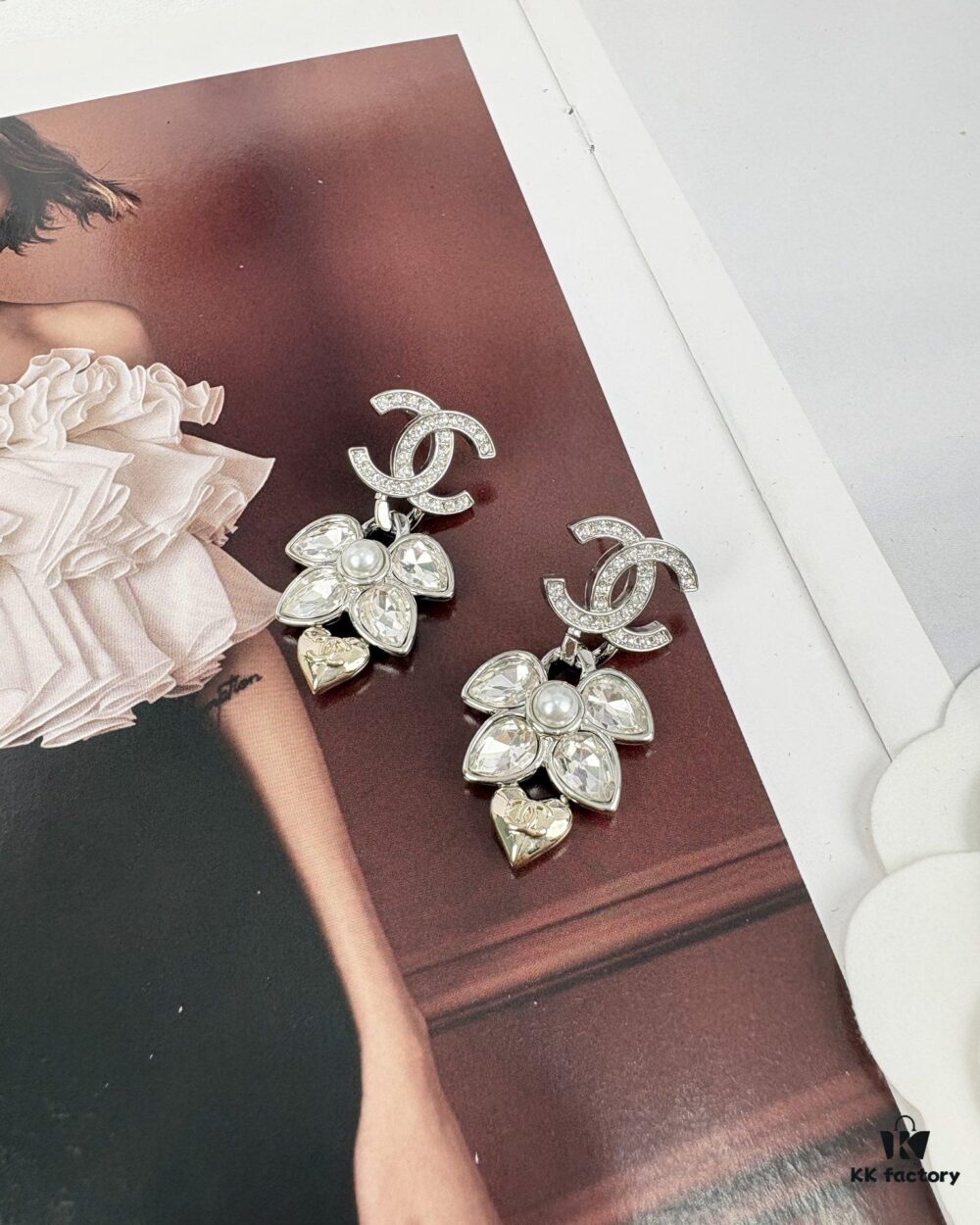 New Xiaoxiang Pearl Flower Double C Pendant Earrings