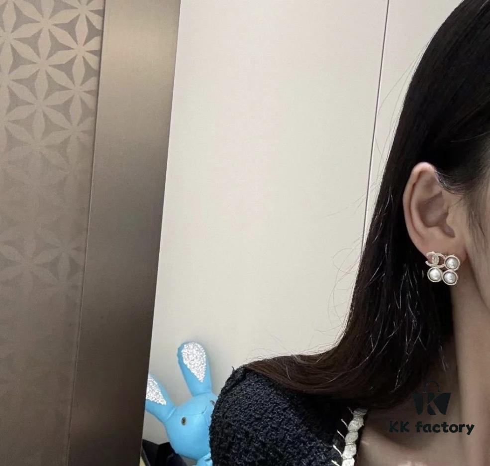 New Xiaoxiang Pearl Inlaid with Diamond Double C Pendant Earrings