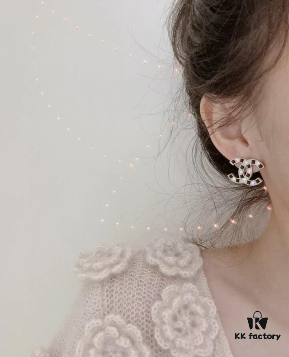 Xiao Xiang New Arrival Silver Double C Full Diamond Transparent Pearl Pendant Earrings