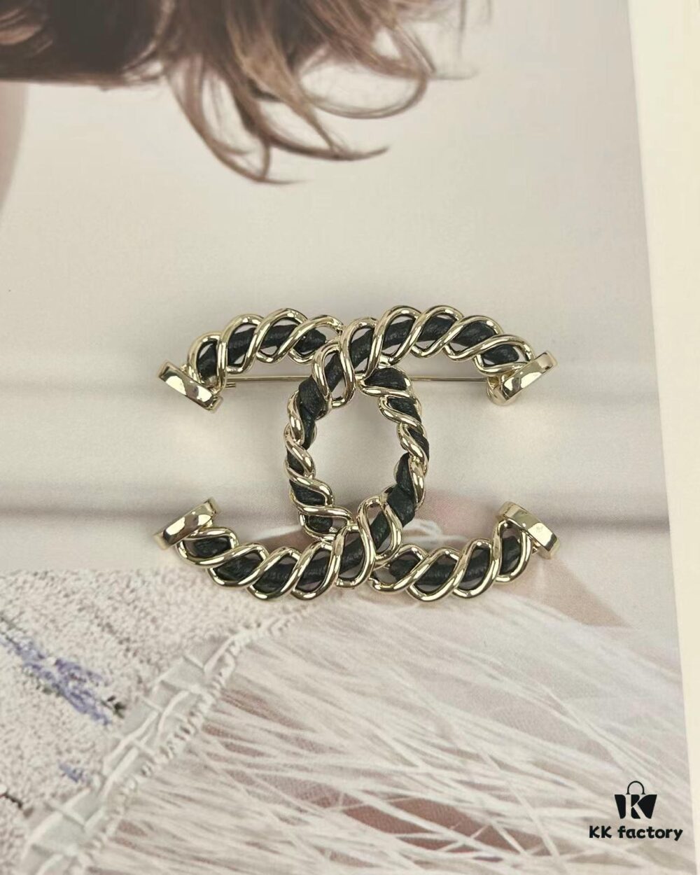Xiaoxiang New Arrival Light Gold Twisted Leather-Pass Through Versatile Elegant Brooch