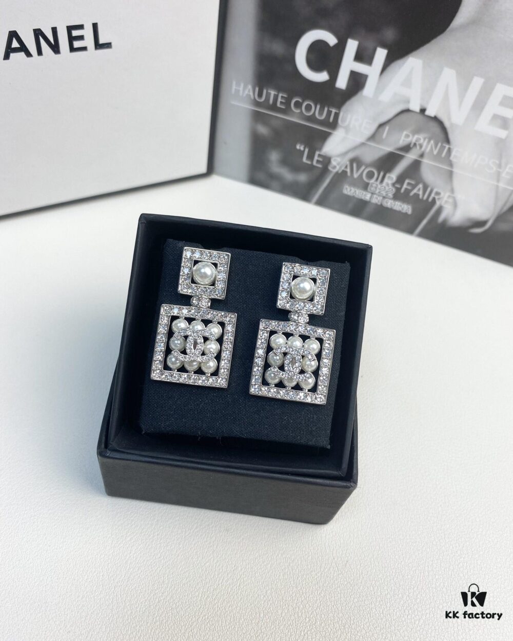 Xiaoxiang New Arrival Luxury Full Diamond Pearl Inlaid Square Earrings ✨🦋