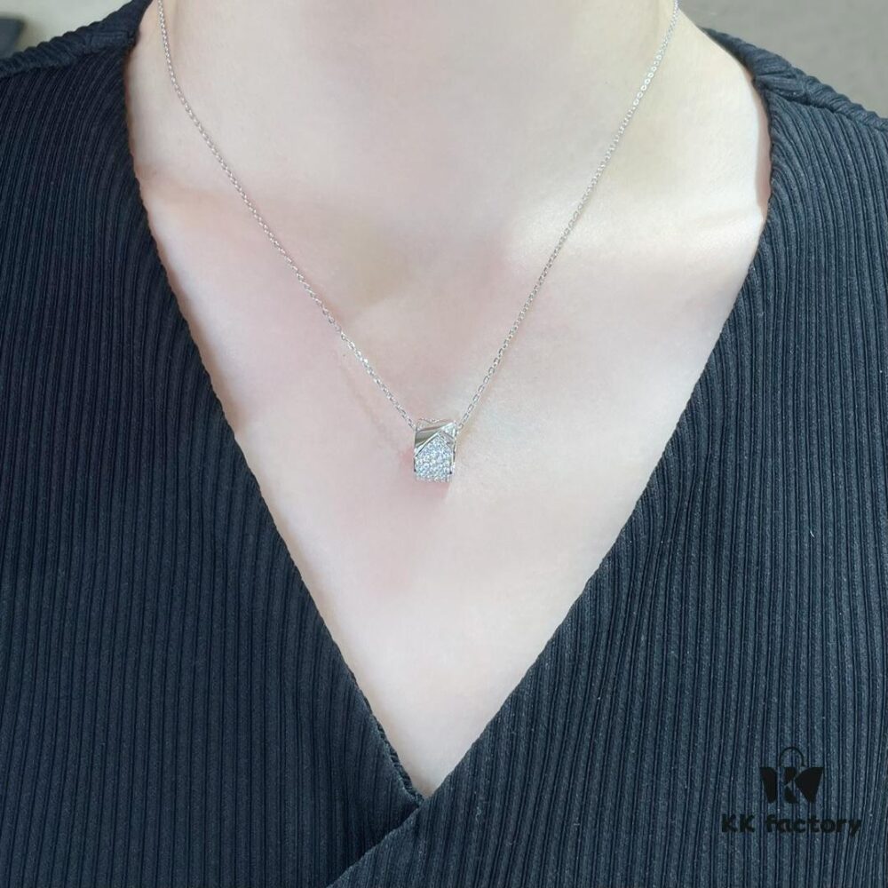 CHAUMET Honeycomb Half-Diamond Small Cylinder Necklace, Two Tones, Double-Sided Wearing, V-Gold Material