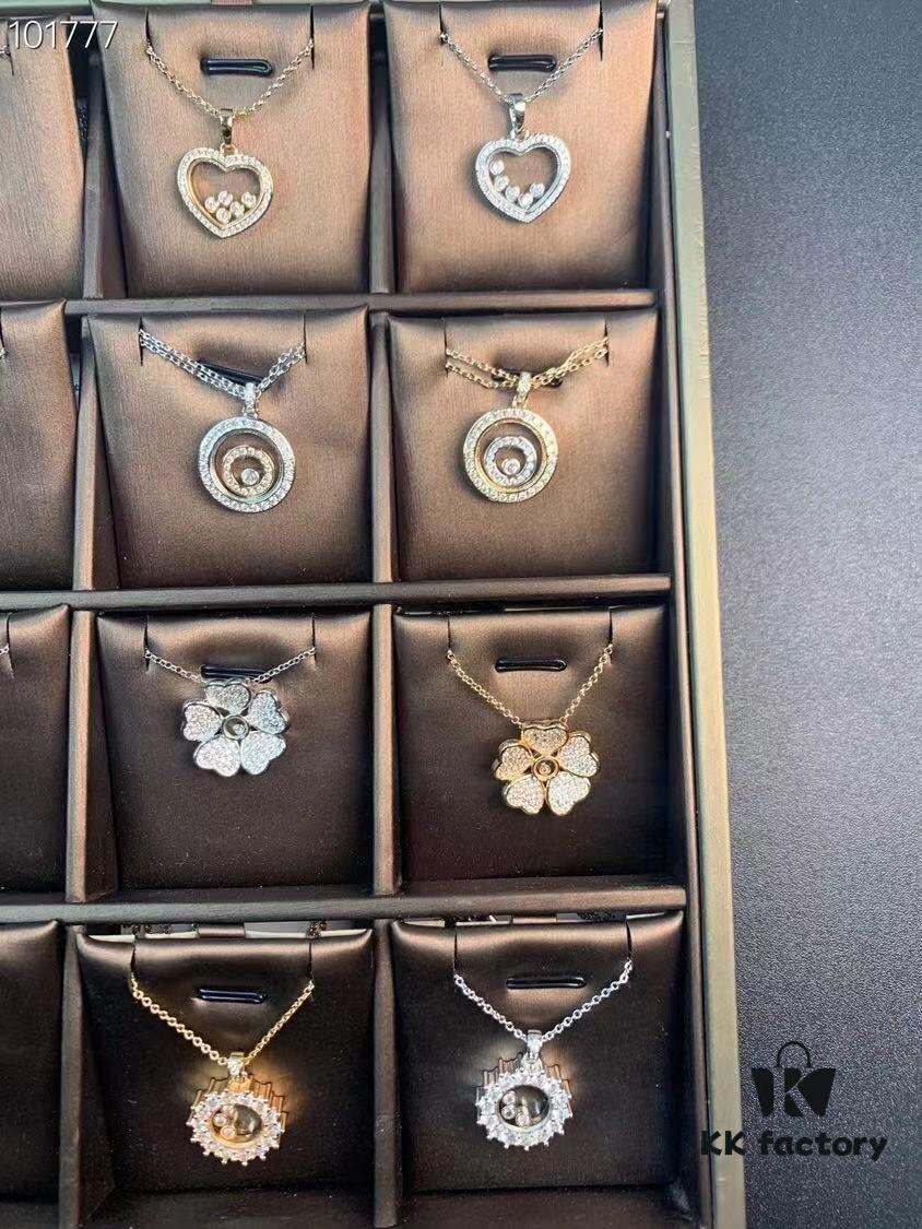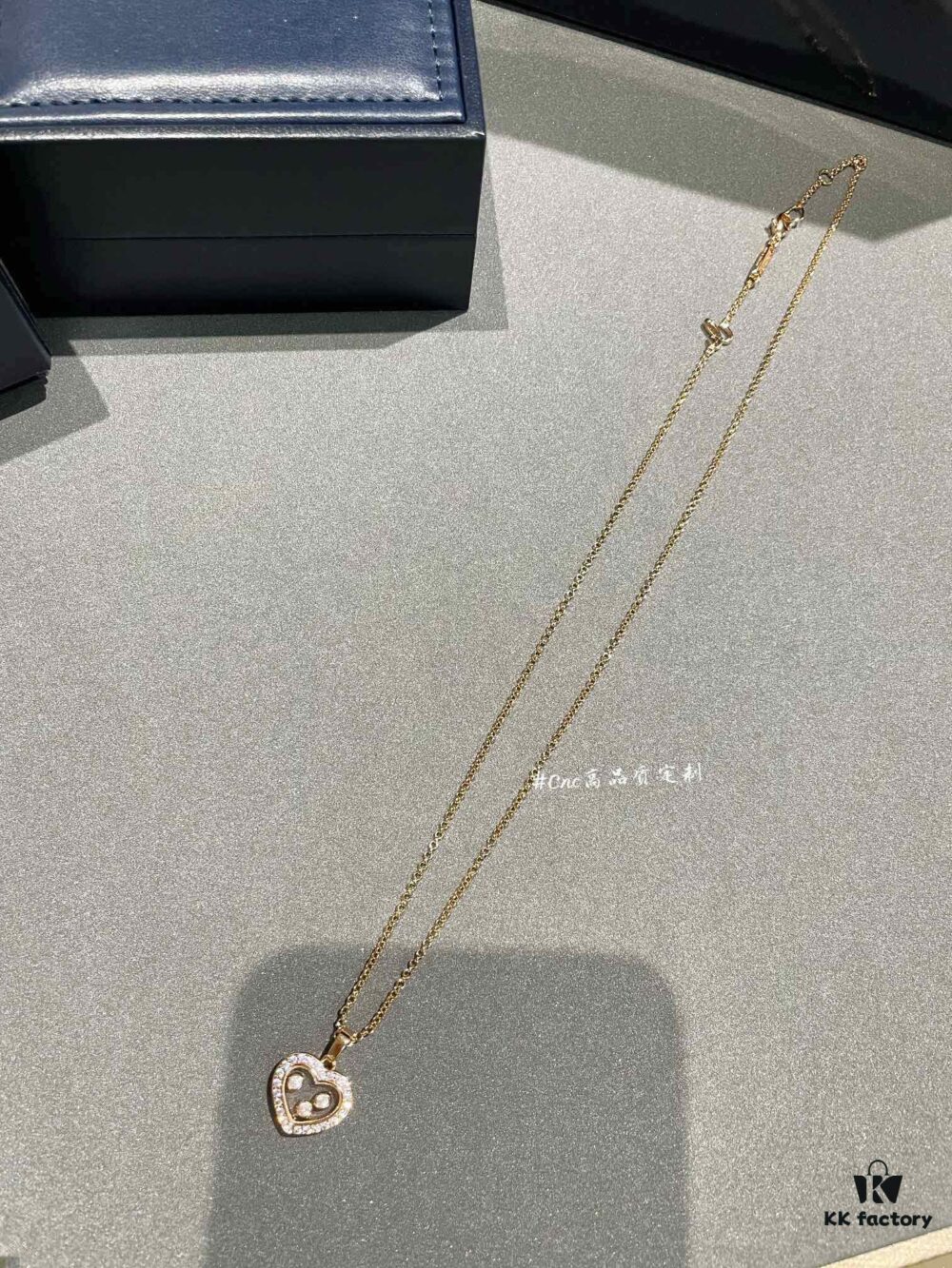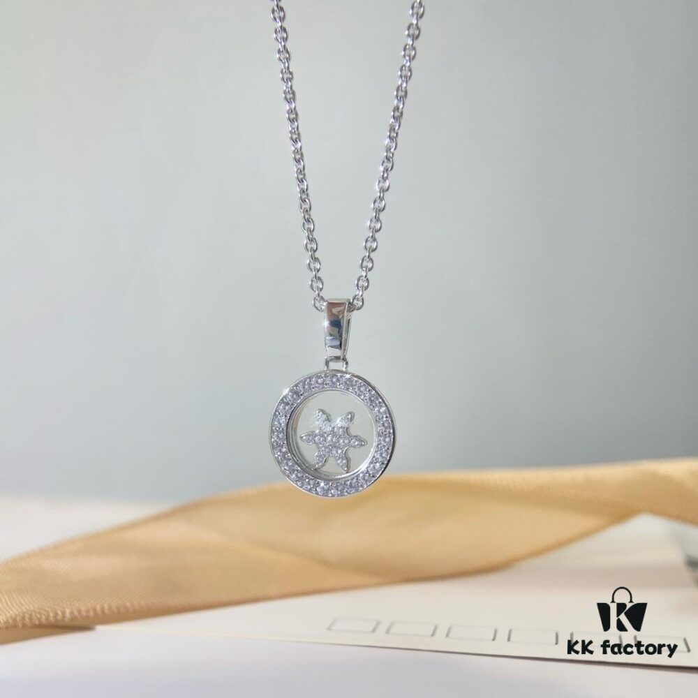 Chopard Angel Necklace – Lucky Chopard with Iconic Moving Diamond, S925 Sterling Silver, 18K Rose Gold Plated, Original Logo and Tag, Adjustable Chain