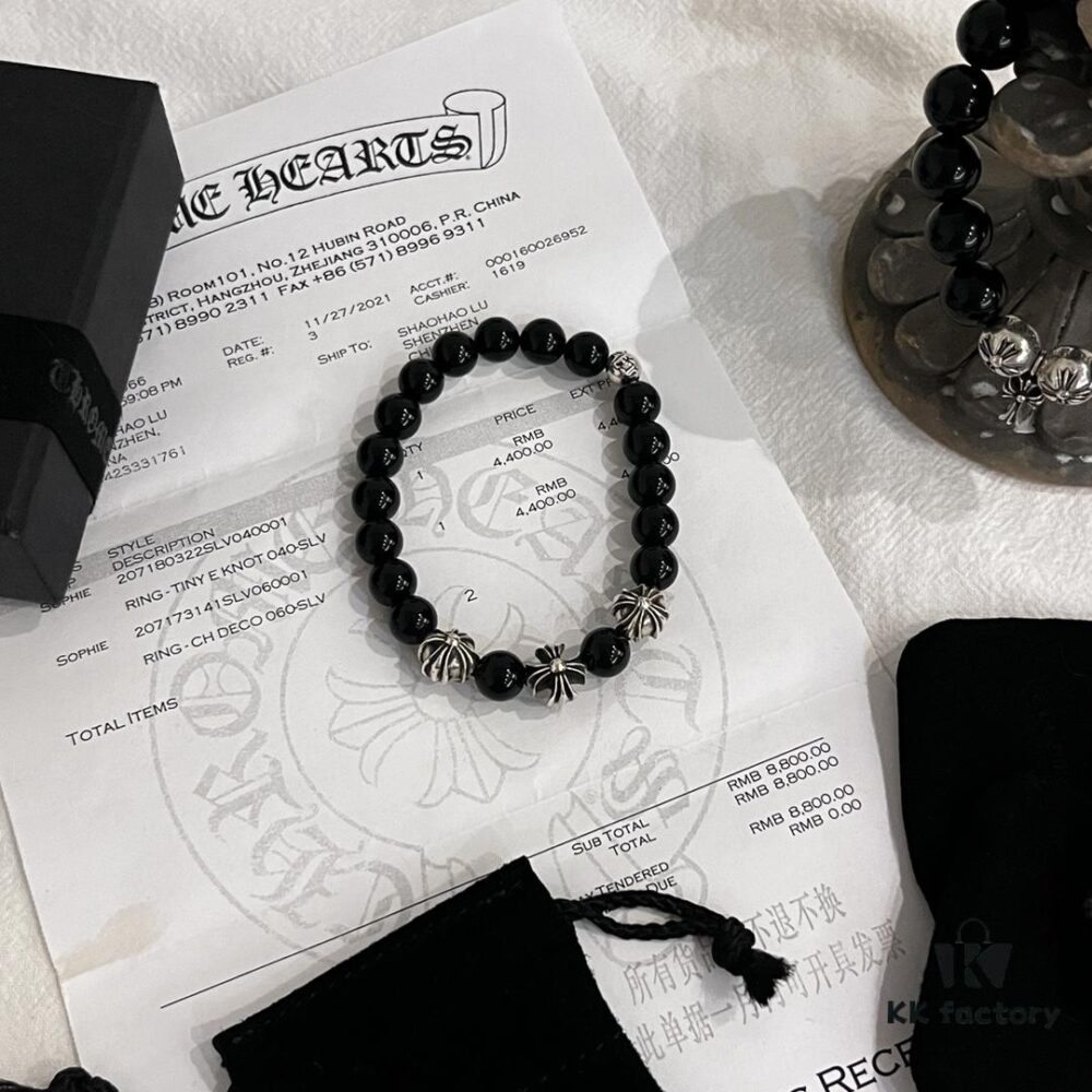 Chrome Hearts Obsidian and Sterling Silver Bead Bracelet – Classic Unisex Design with Oxidized Finish