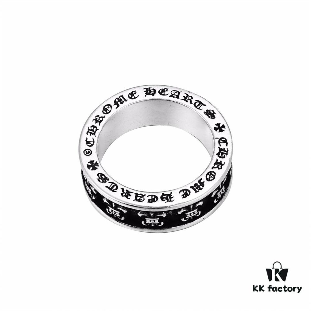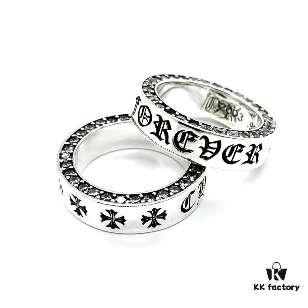 Chrome Hearts Sterling Silver Classic Forever Ring with Stone Inlay