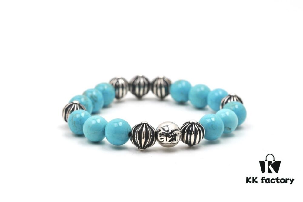 Chrome Hearts Turquoise and 925 Sterling Silver Bead Bracelet – Classic Unisex Design with Oxidized Finish