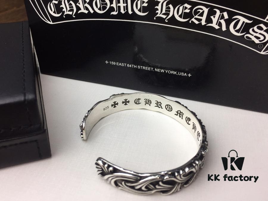 Chrome Hearts Wide Open Bangle Bracelet with Vintage Gothic Cross Design