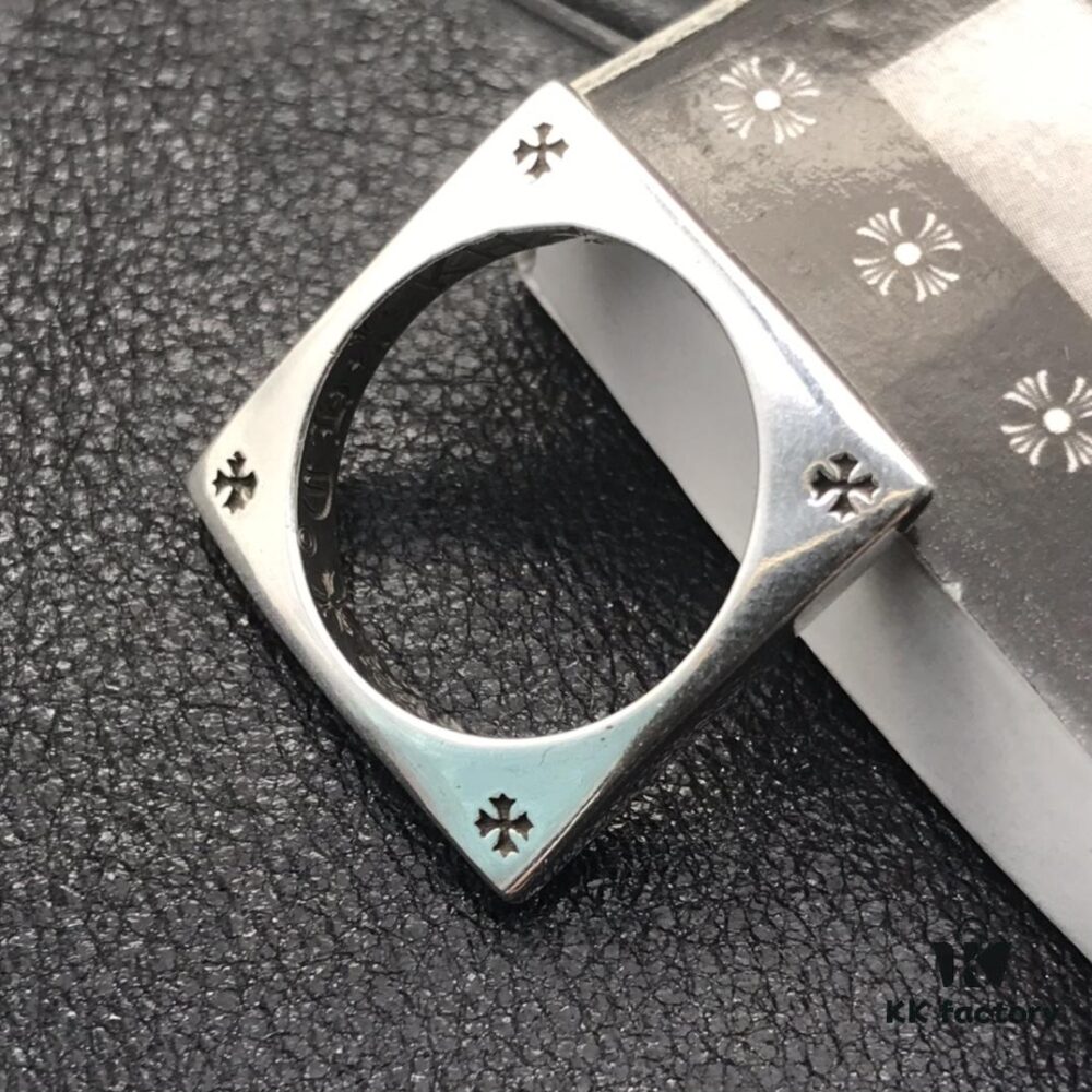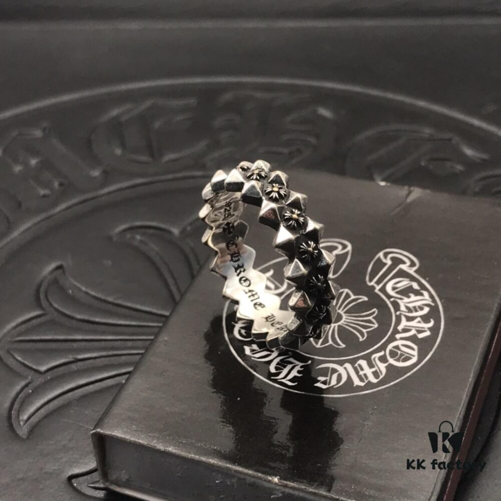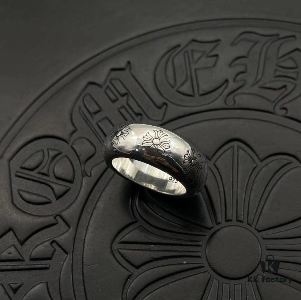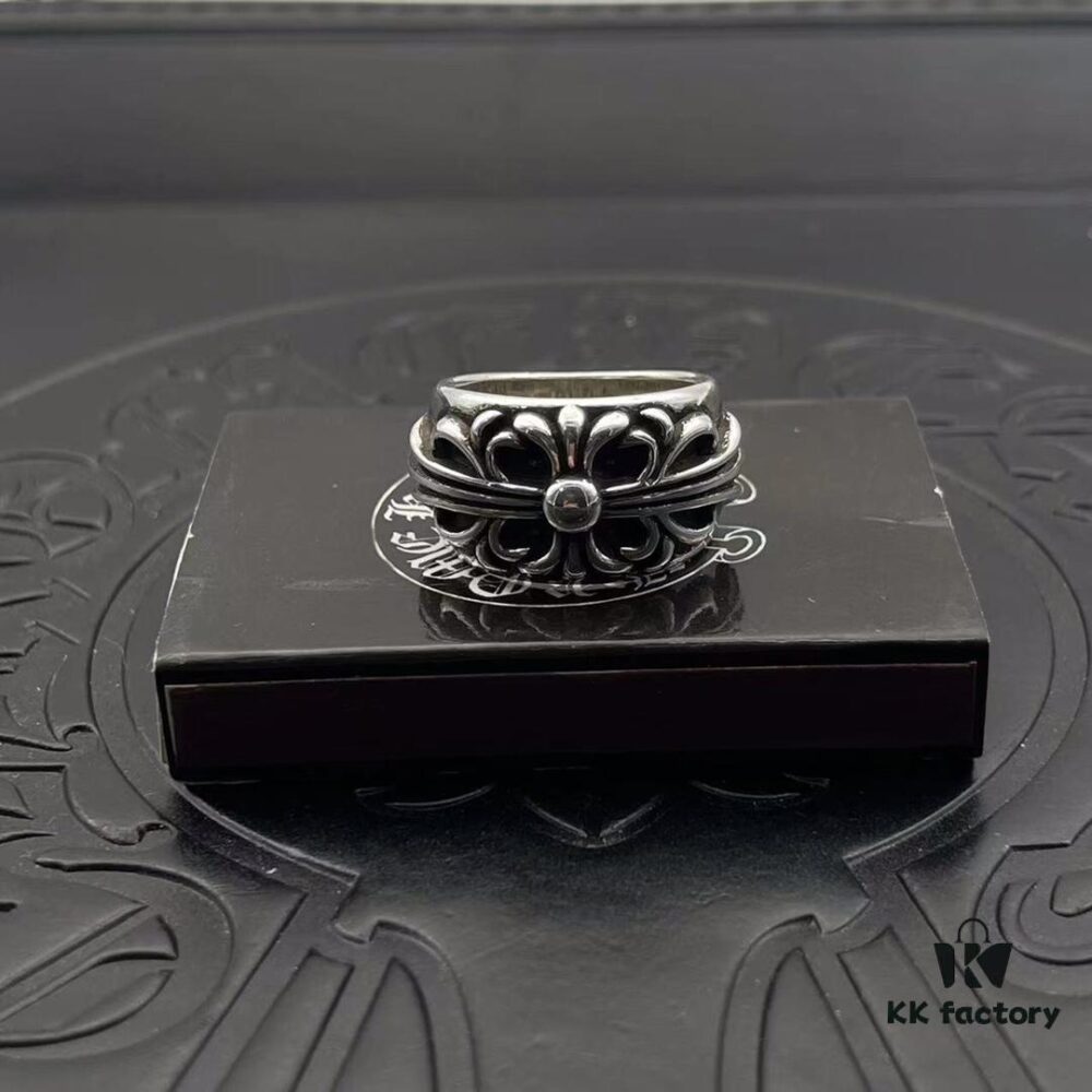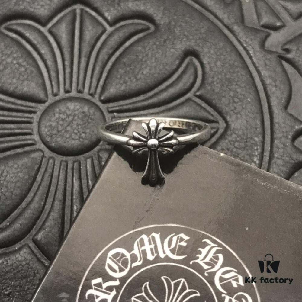 High-End Chrome Hearts Long Cross Flower Small Ring, Clear Engraving, Unisex Design, Available in US Sizes 5 to 9