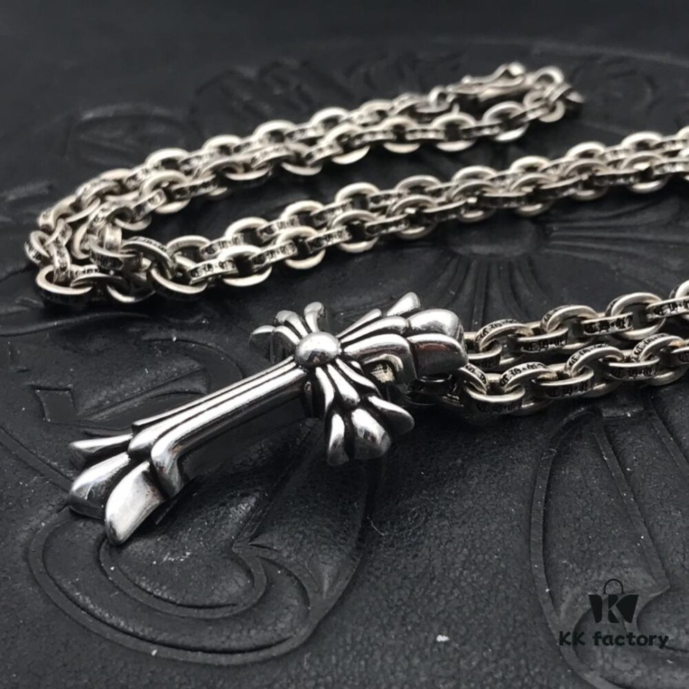 High-Grade Replica Chrome Hearts Classic Medium Double Layer Cross Pendant Necklace with Letter Chain, 50-70cm Adjustable Length
