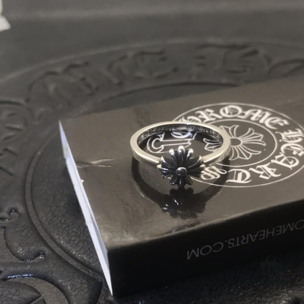 High-Version Chrome Hearts Cross Flower Small Ring, Clear Engraving, Unisex Design, Available in US Sizes 5 to 9