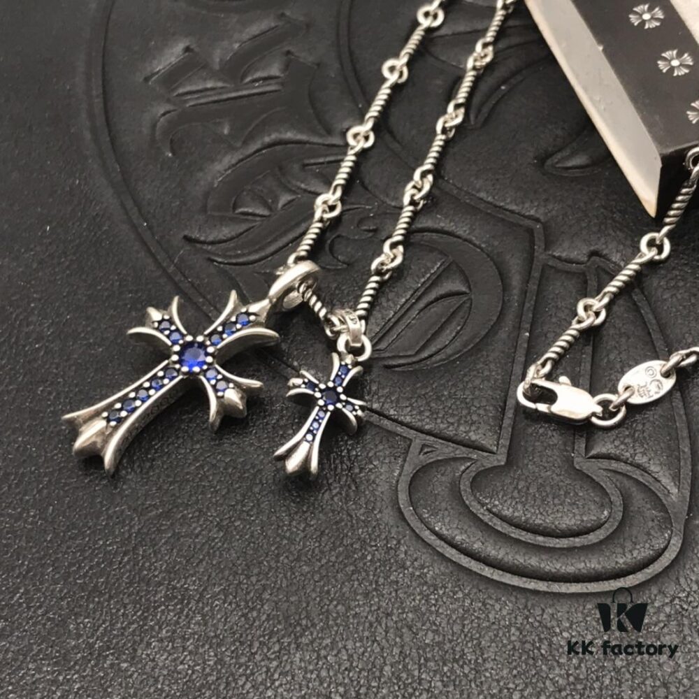 High-Version Chrome Hearts Blue Diamond Aged Double Cross Necklace, One Style Four Wears, The Pinnacle of Cross Necklaces, A Timeless Classic