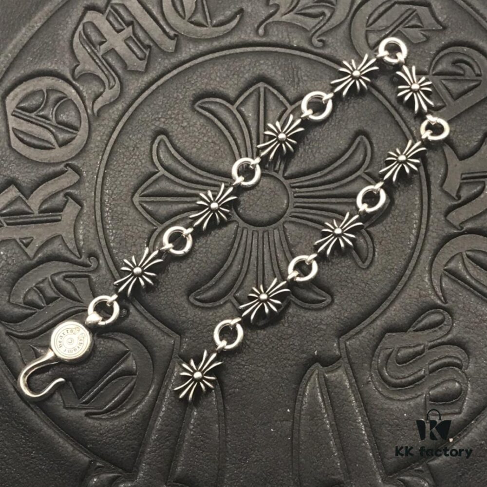 High-Version Chrome Hearts Plain Cross Wristband without Stones, Authentic Buckle Design with Original 14K Engraved Inlay, Unisex Bracelet, Available in Sizes 17-18-19