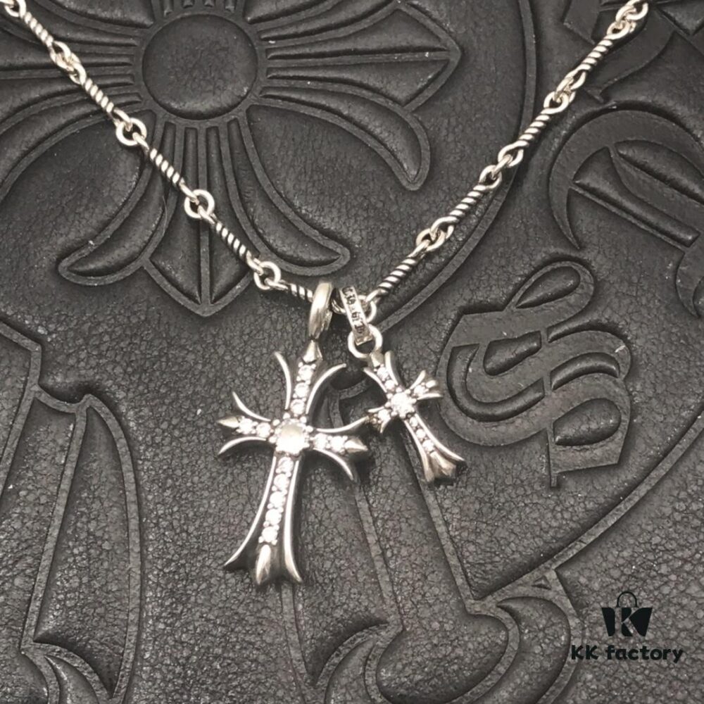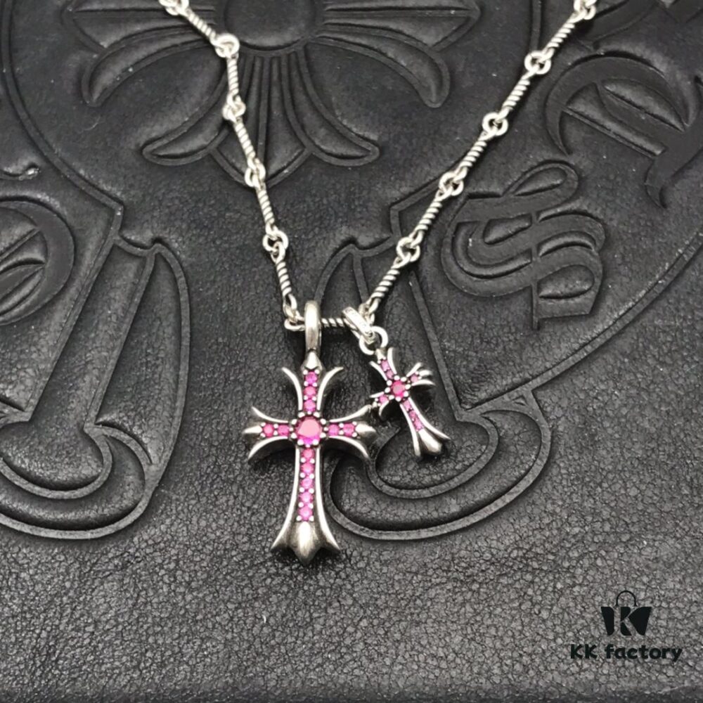 High-Version Chrome Hearts Pink Diamond Aged Double Cross Necklace, One Item with Four Chains, the Pinnacle of Cross Necklaces, a Timeless Classic