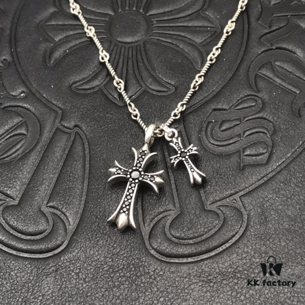 High-Version Crocs Black Diamond Aged Double Cross Necklace, One Style Four Wears, The Pinnacle of Cross Necklaces, A Timeless Classic