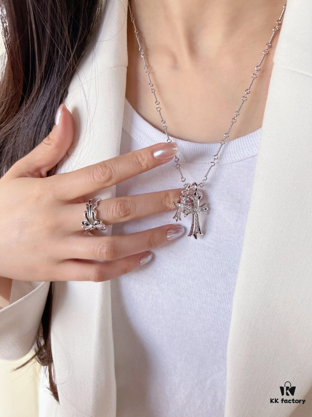 New Boutique Chrome Hearts ❤️ Cross Dice Multi-Element Combined Necklace, Original Craftsmanship, Premium Quality, Handmade, Authentic Mold Design 💝 Must-Have Fashion Accessory, Unisex Wear, Couples Style, Rock Punk Sterling Silver Style, Retro Elements, Trendy and Versatile, Same as Official Website 💯
