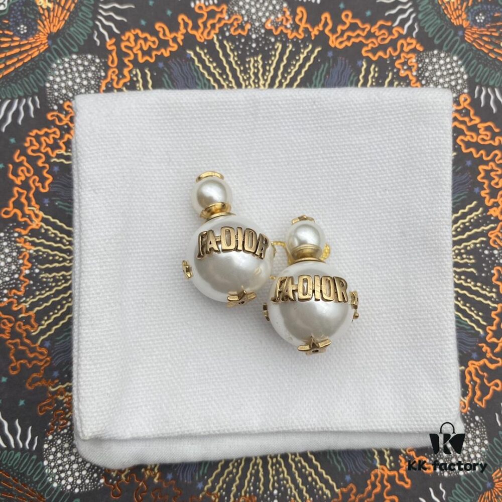 Dior Pearl D-Letter Stud Earrings with Large and Small Pearls