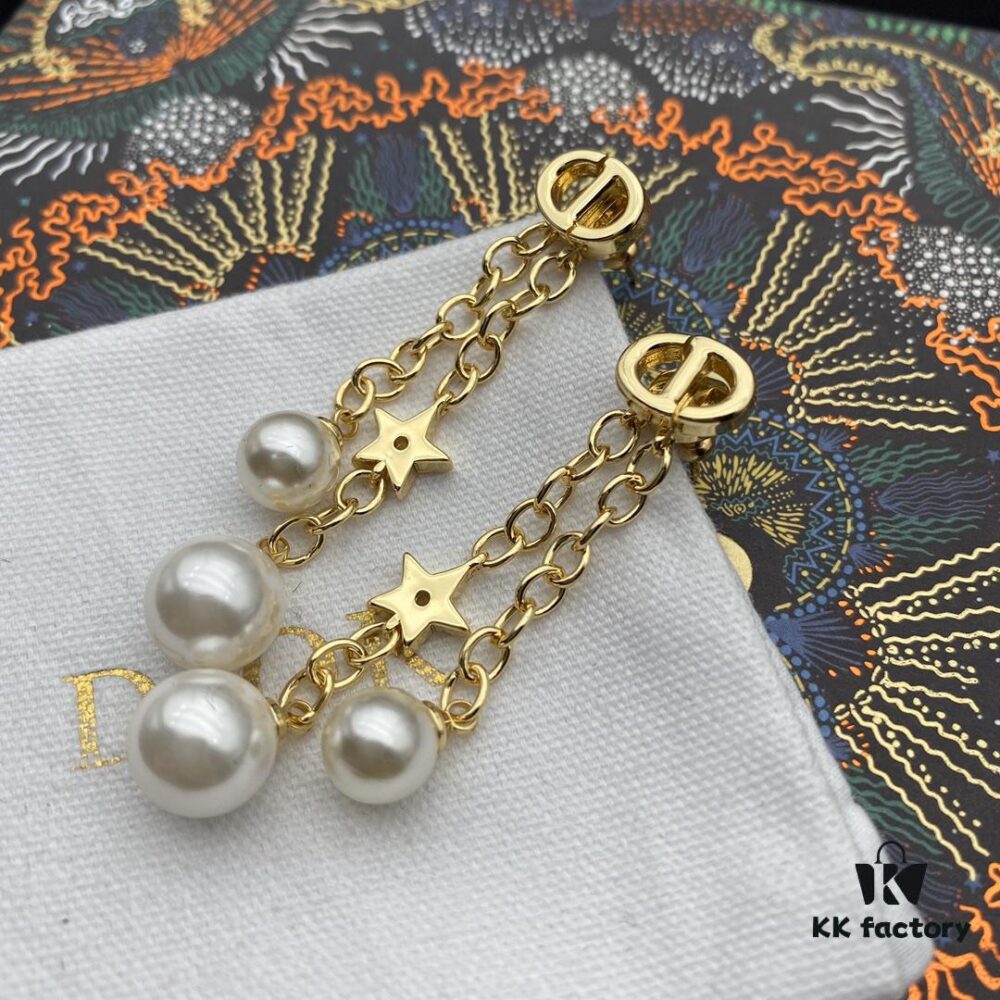 Dior Star CD Pearl Rhinestone Stud Earrings, Unique Design, High Street Wearability