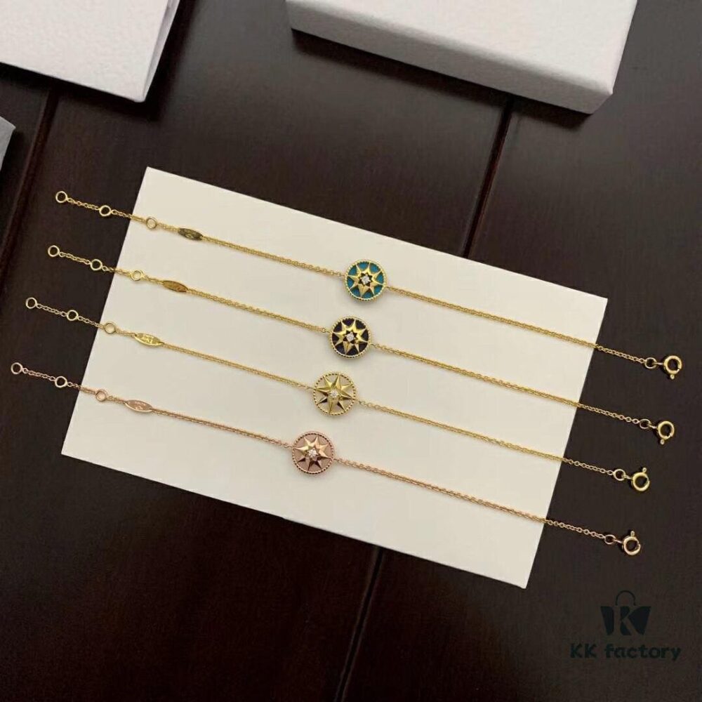 D!or Compass Bracelet – Rose des Vents Collection, 18K Real Gold Plated with Diamond and Silver Base, Featuring Turquoise, Lapis Lazuli, White Shell, and Pink Crystal Options