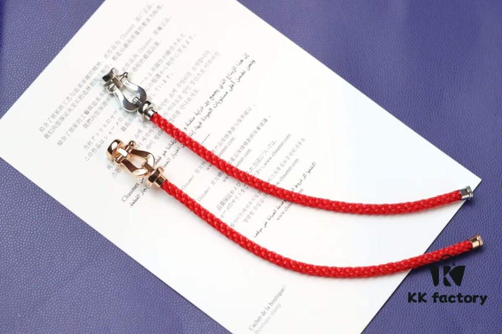 Fred Small Half-Drilled Horseshoe Knot Red String Bracelet – High-End Custom Fashion Luxury Item, Thickened 18K Gold Plated Craftsmanship with Precision Micro-Inlay, Must-Have Accessory for Trendsetters and Influencers, Platinum Finish