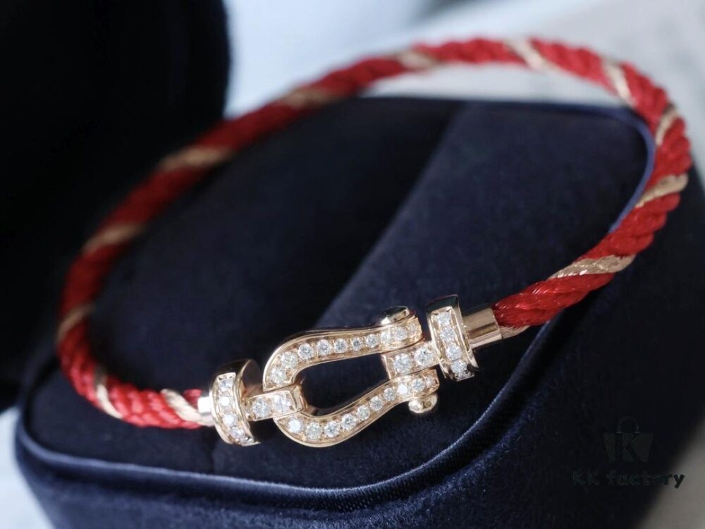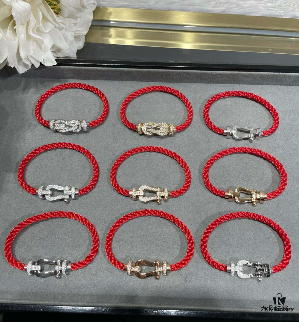 Fred Small Smooth Horsehoof Knot Red String Bracelet, Luxury Fashion Exquisite High-End Custom Jewelry, Thickened 18K Gold Plated Electroplating Craft, Fine Micro-Inlaid Design, Must-Have Accessory for Influencers and Trendsetters