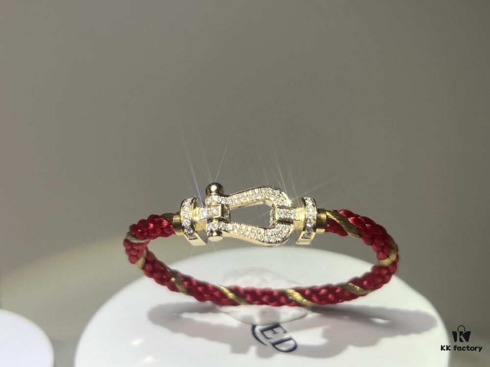 Fred Small Horseshoe Snap Buckle Steel Rope Bracelet, Fashionable and Exquisite, High-End Customized 18K Gold Plated Craftsmanship, Precision Micro-Inlay, Must-Have Item for Influencers and Fashion Enthusiasts