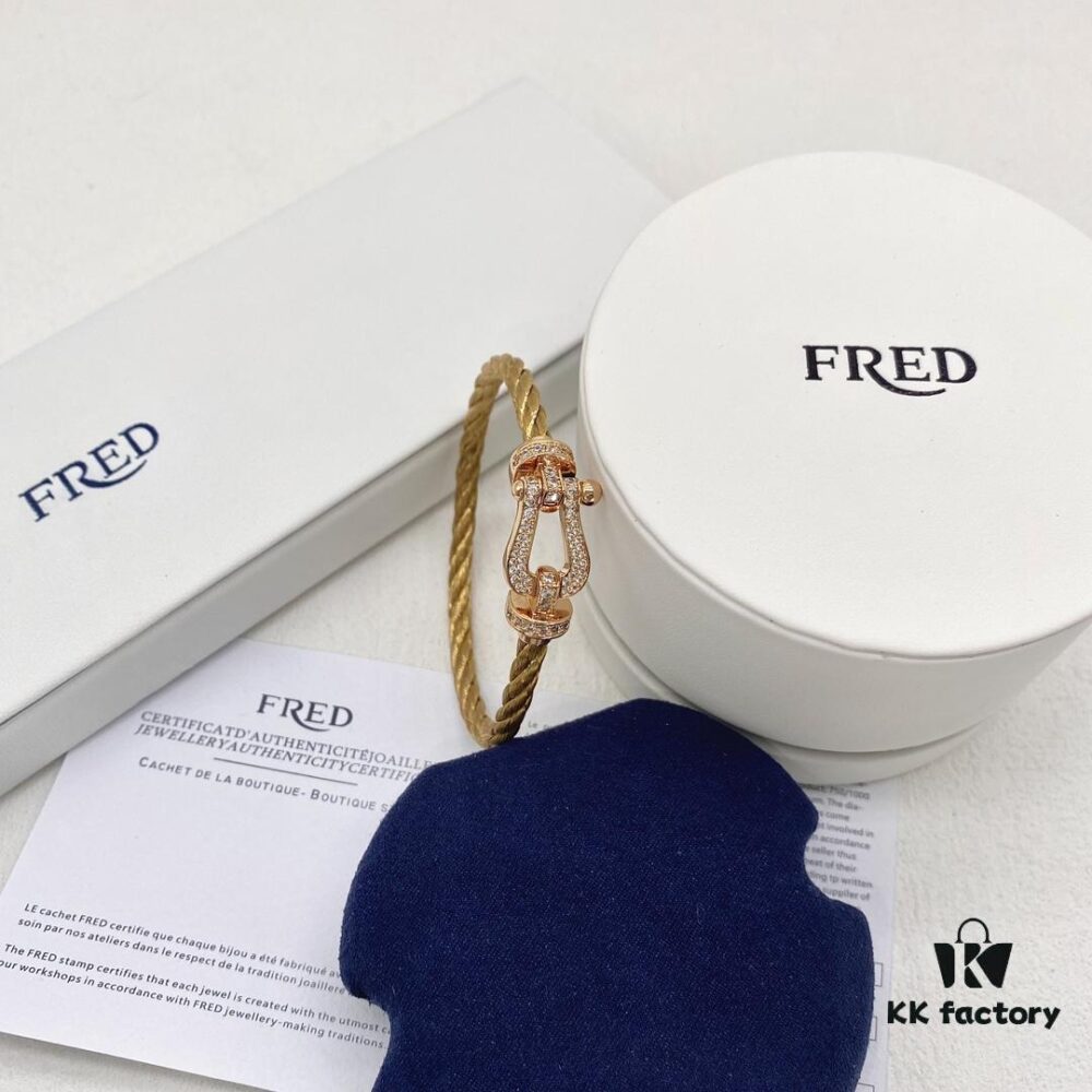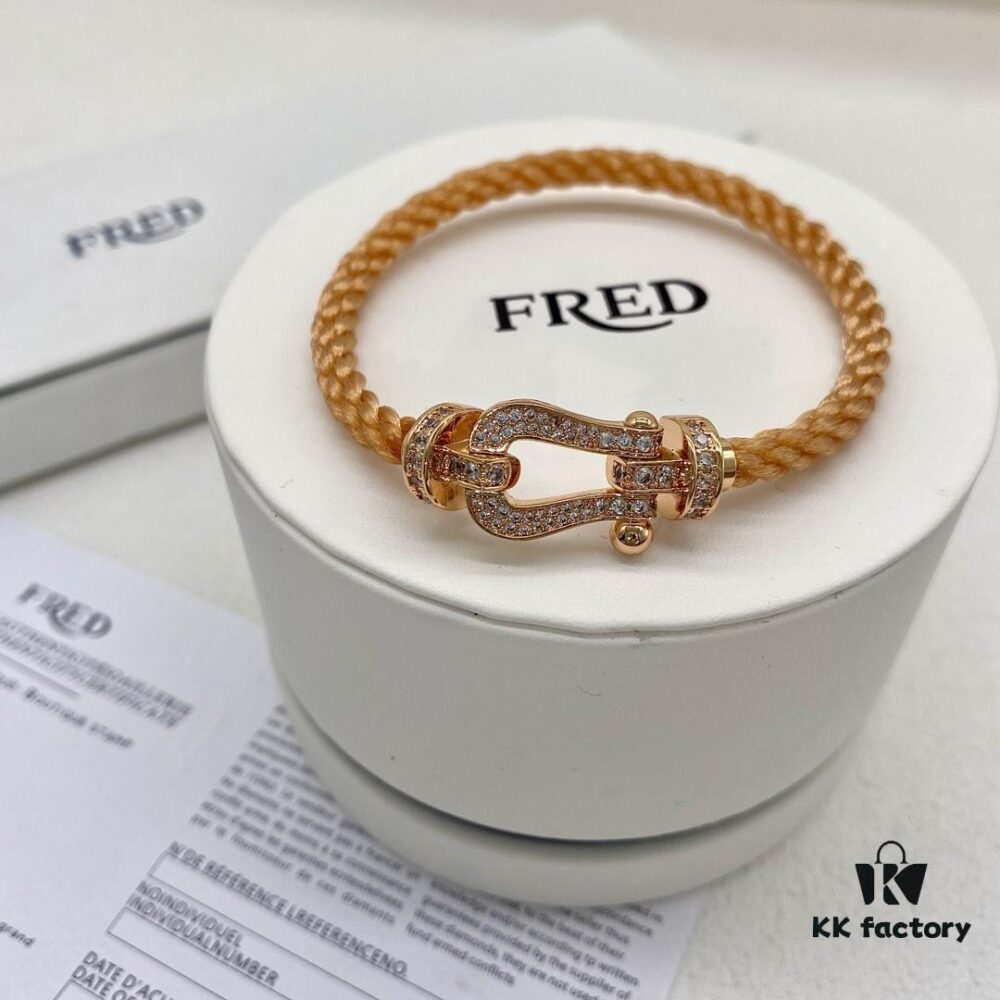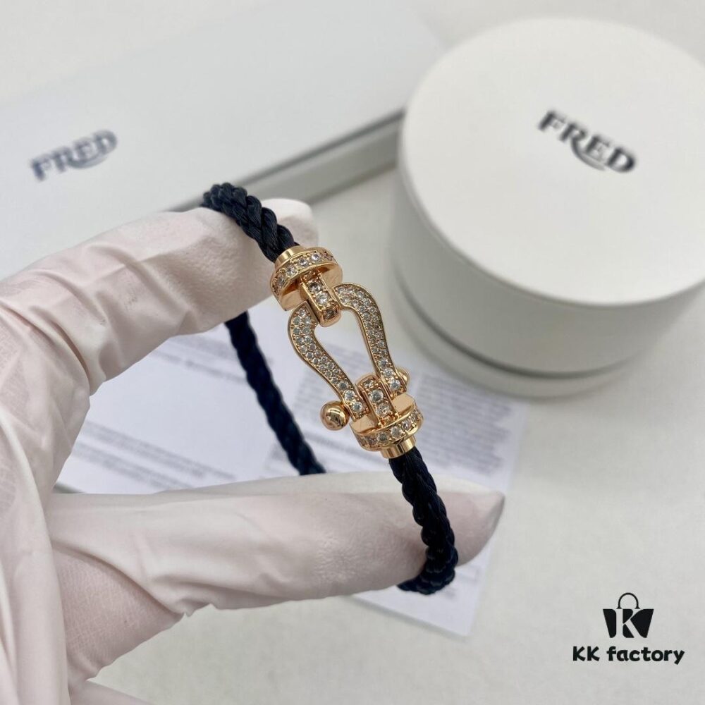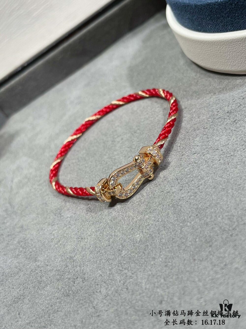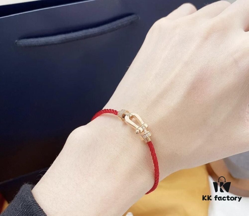 New Arrival ❤️ Fred Style Small Full Diamond Horsehoof 18K Gold Plated Steel Rope Bracelet