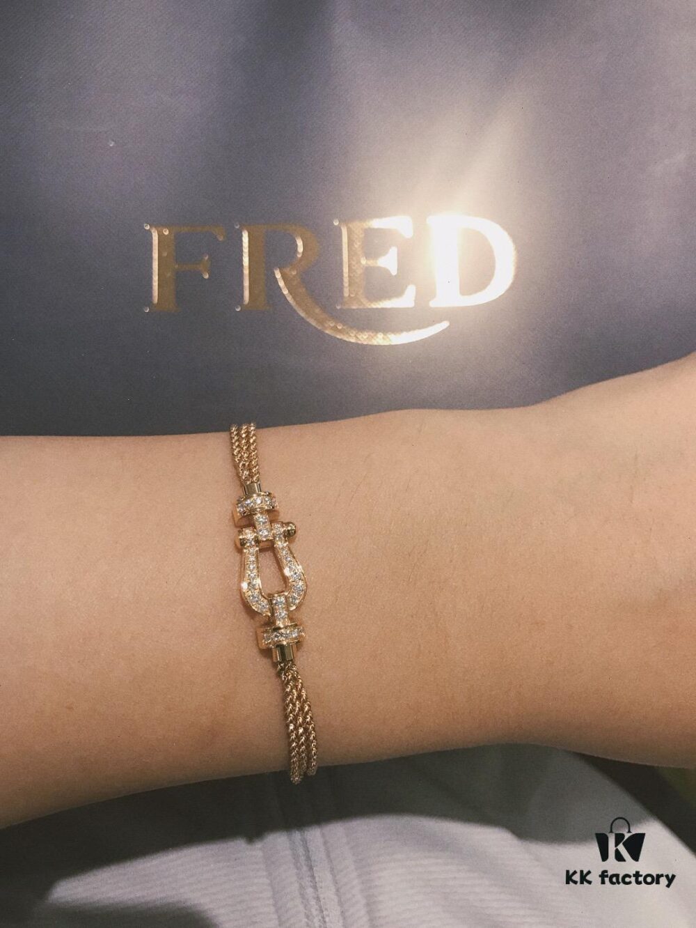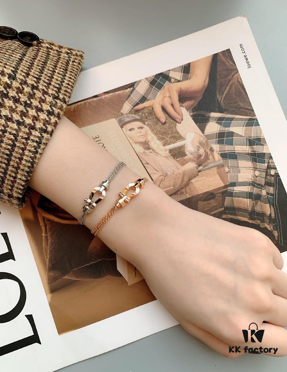 Stunning Bracelet Inspired by Guan Xiaotong’s Style – Fred-Inspired Design with Horseshoe Charm in Platinum, Rose Gold, and Yellow Gold