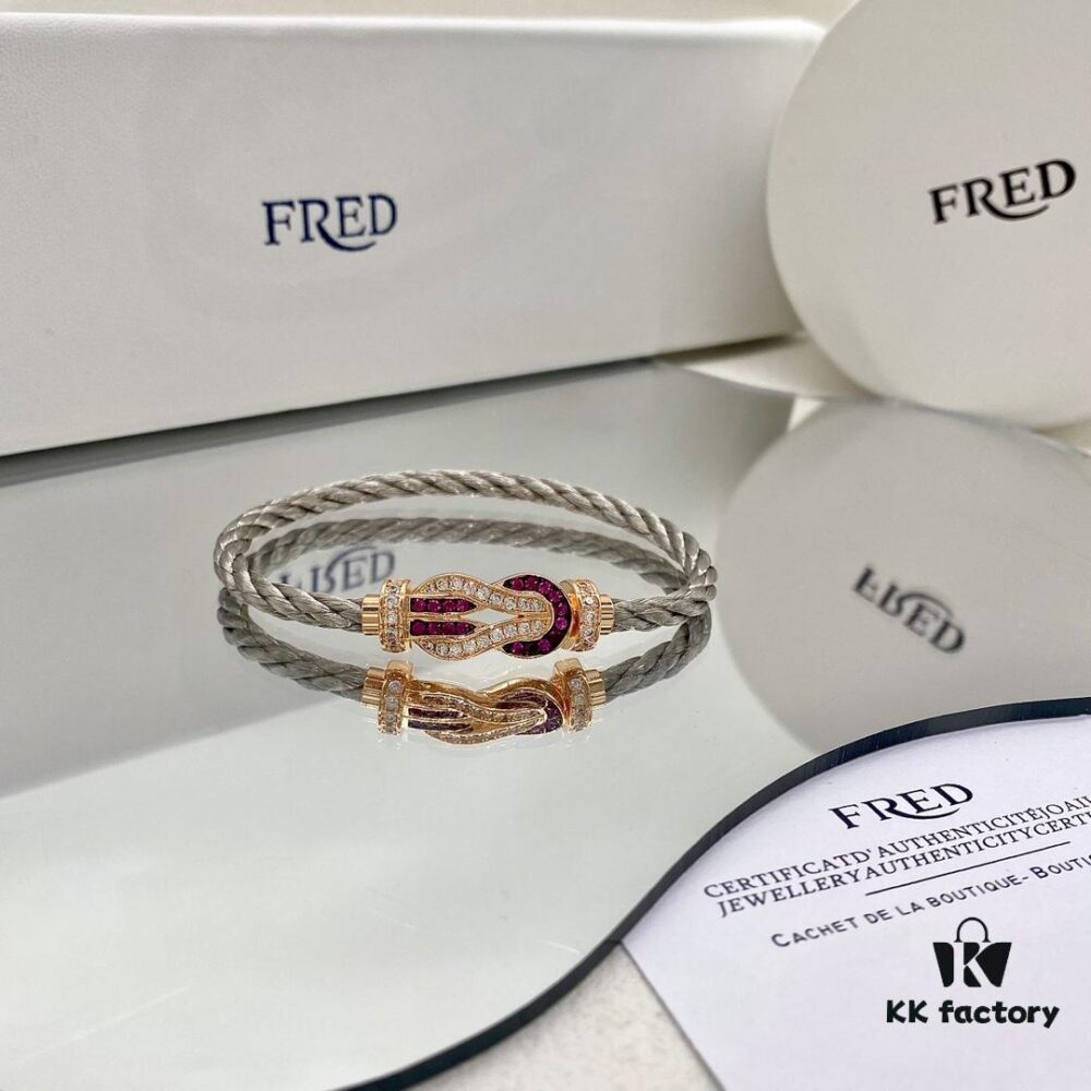 Zhang Tian’ai Same-style FRED FRED Force Infinie Large 18K Rose Gold Ruby Diamond Bracelet