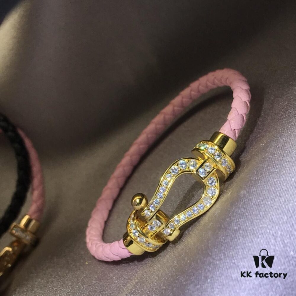 Fred Force 18K Gold Plated Sterling Silver Horse-Shoe Charm Bracelet with Micro-Paved Zirconia – Luxury Fashion Designer Jewelry, Rhodium, Rose Gold, Yellow Gold Finish
