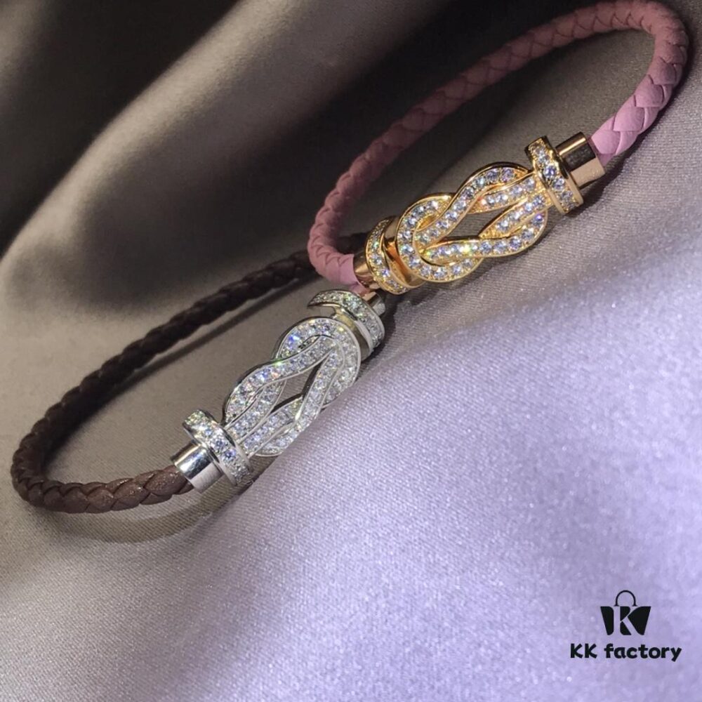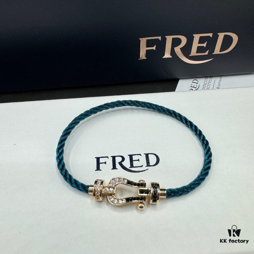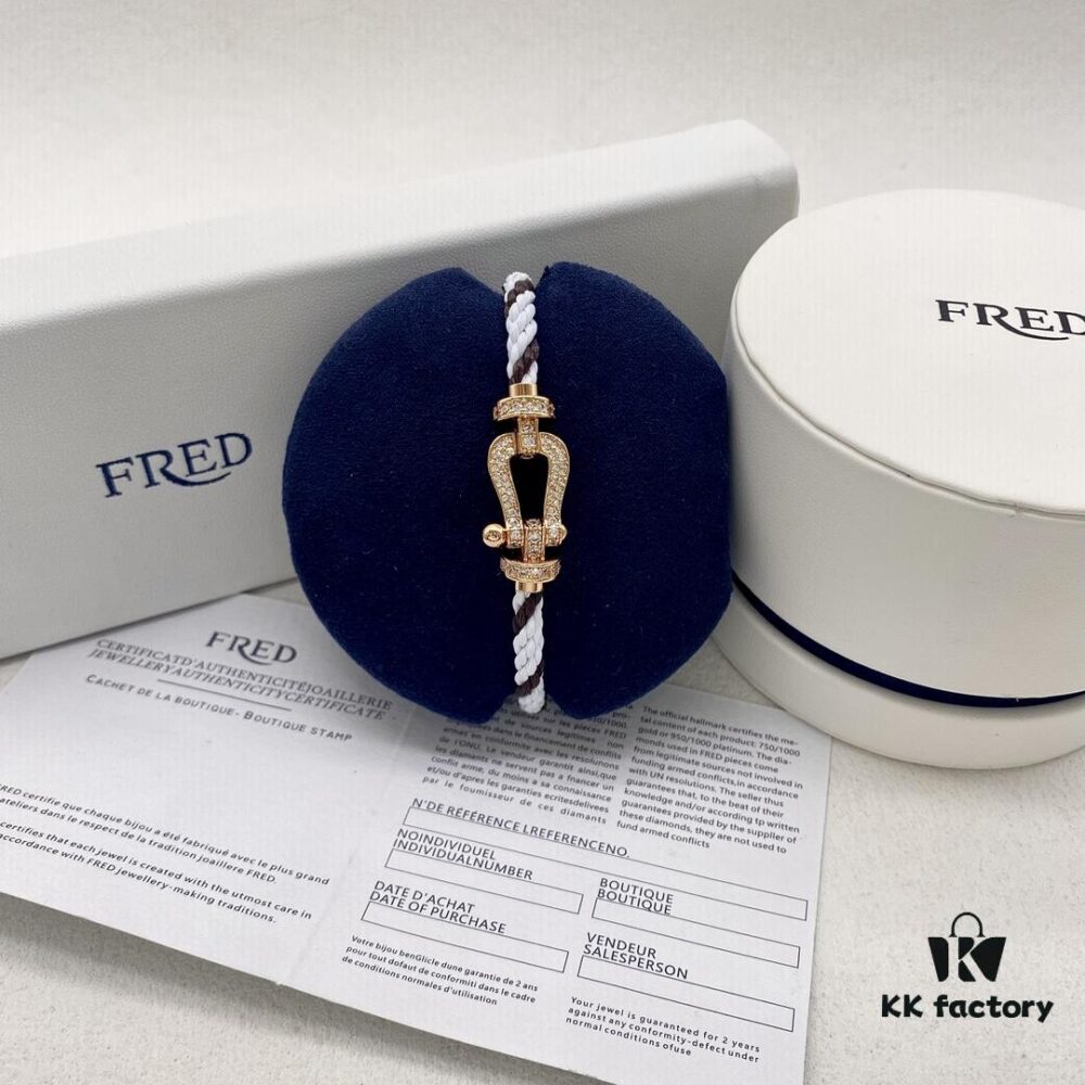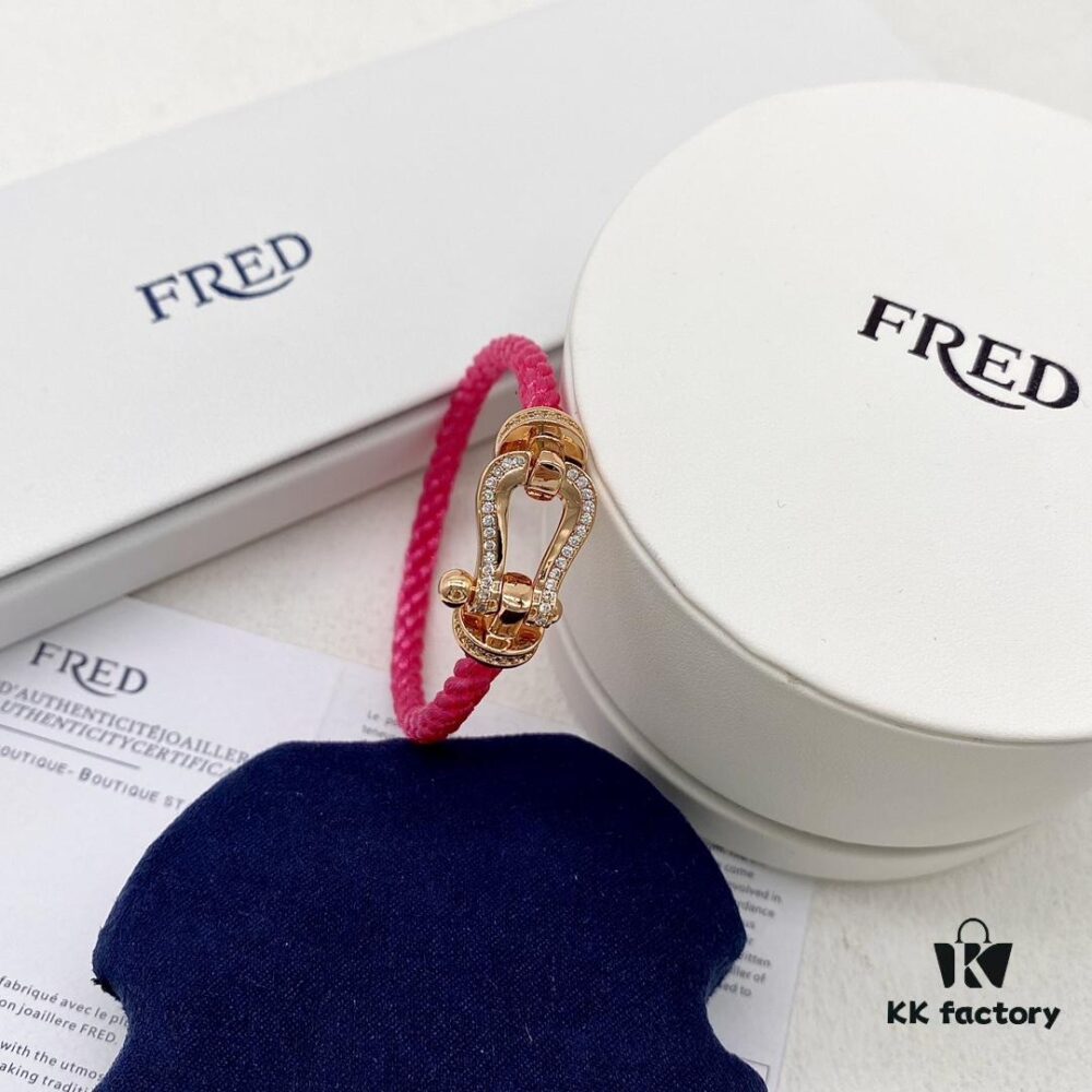 FRED France FORCE 10 Series Horse-Shoe Buckle Figure-8 Knot Red Rope Bracelet