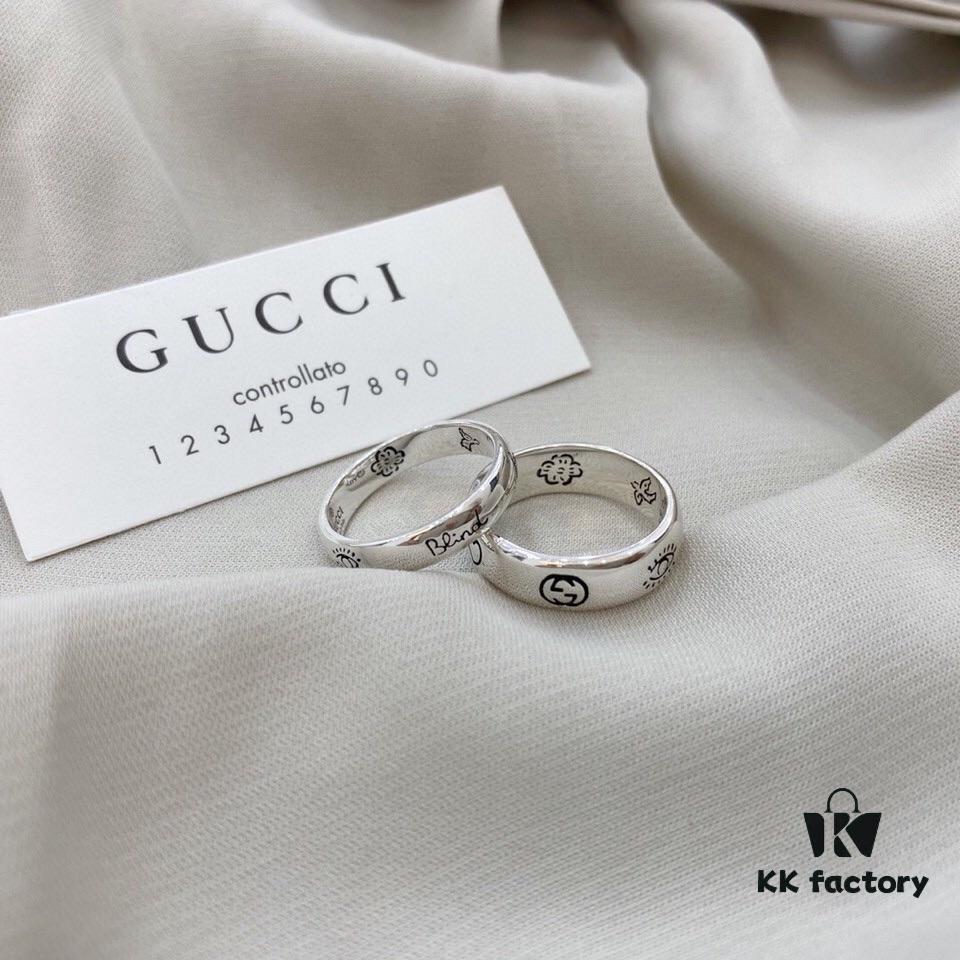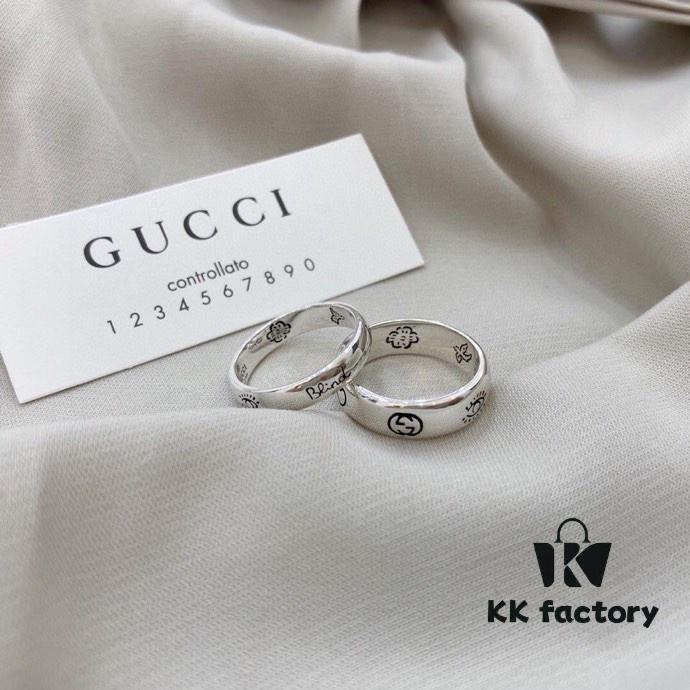 Gucci Gucci 925 Sterling Silver Fearless Love Double G Floral and Bird Couple Ring
