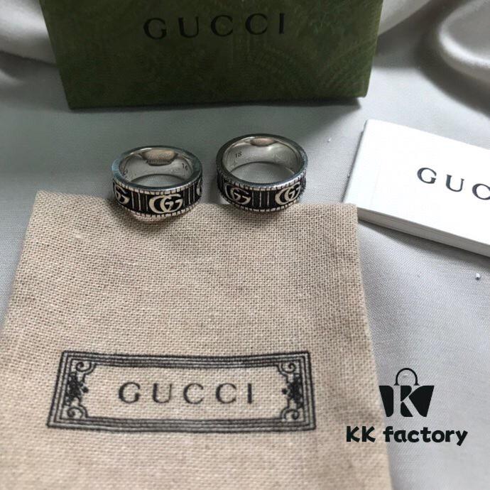 Gucci Gucci 925 Sterling Silver Double G Striped Vintage Ring 5360125