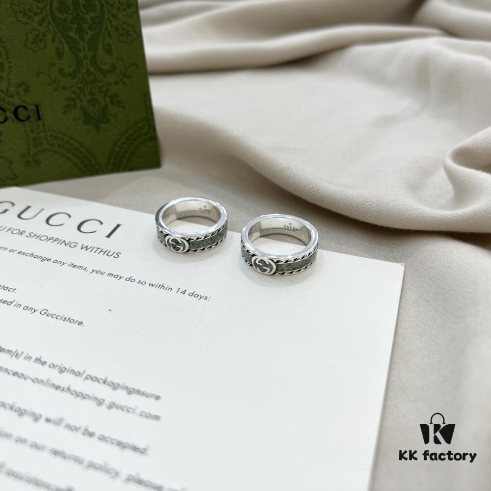Gucci Gucci 925 Sterling Silver GG Logo Light Gray Marble Enamel Ring