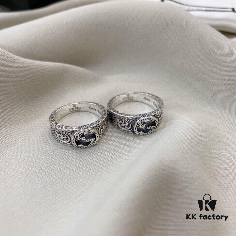 Gucci Gucci 925 Sterling Silver Interlocking Double G Enamel Ring