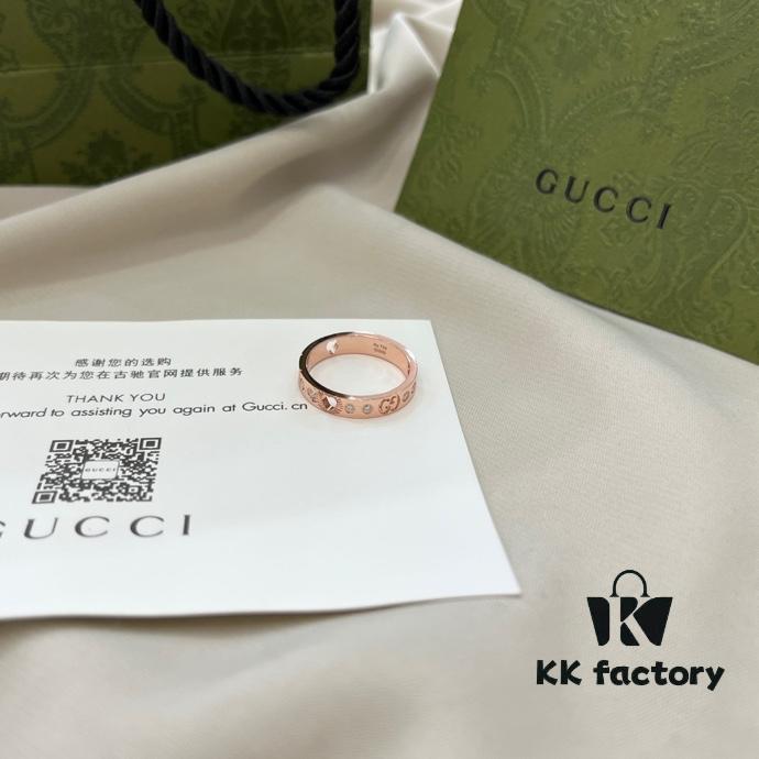 Gucci Gucci 925 Sterling Silver Icon Series Heart Openwork Diamond-Inlaid Ring