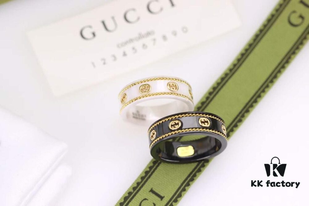 Gucci Icon Series Gold-Edged Black and White Ceramic Couple’s Ring