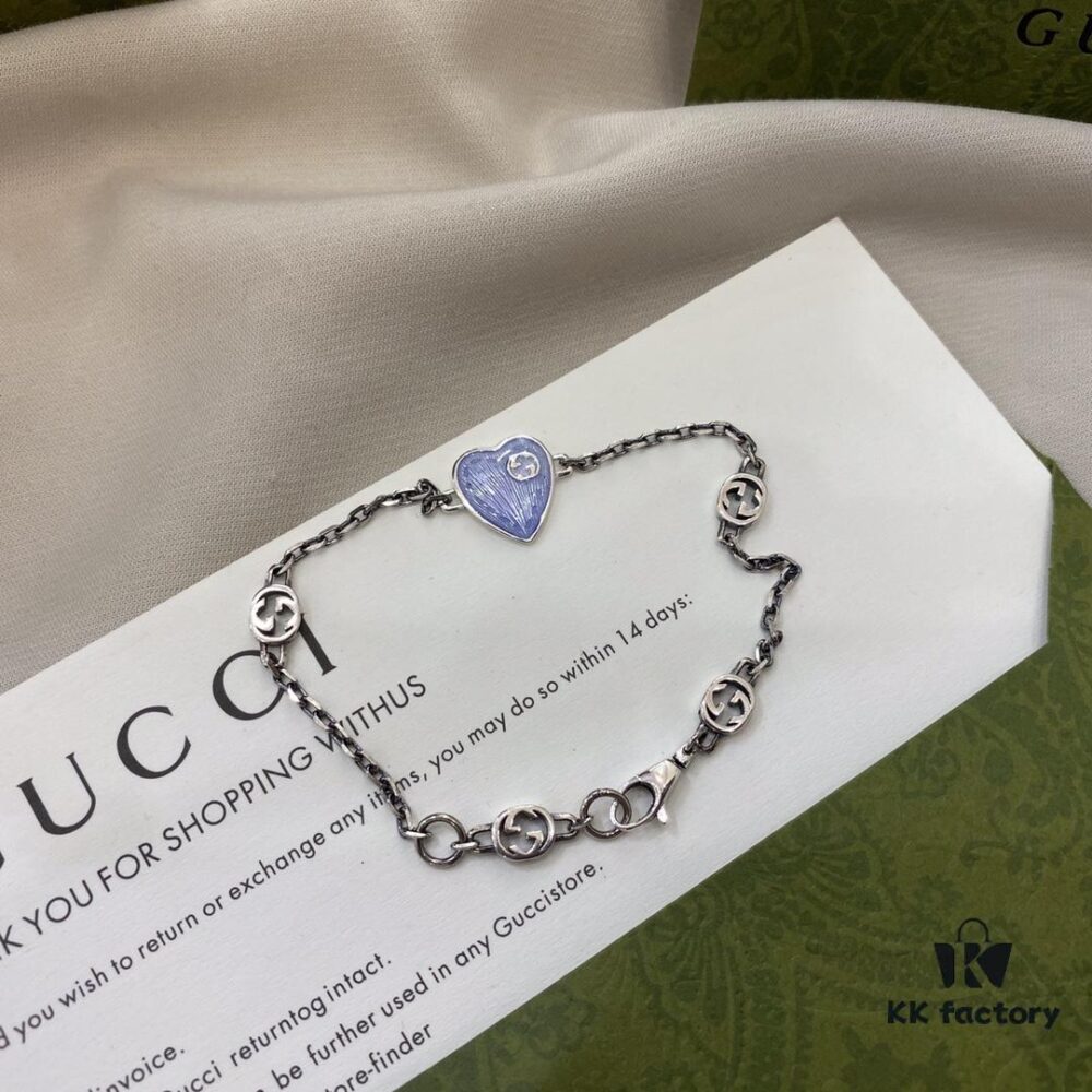 Gucci Interlocking Double G Enamel Blue Heart Bracelet in 925 Sterling Silver