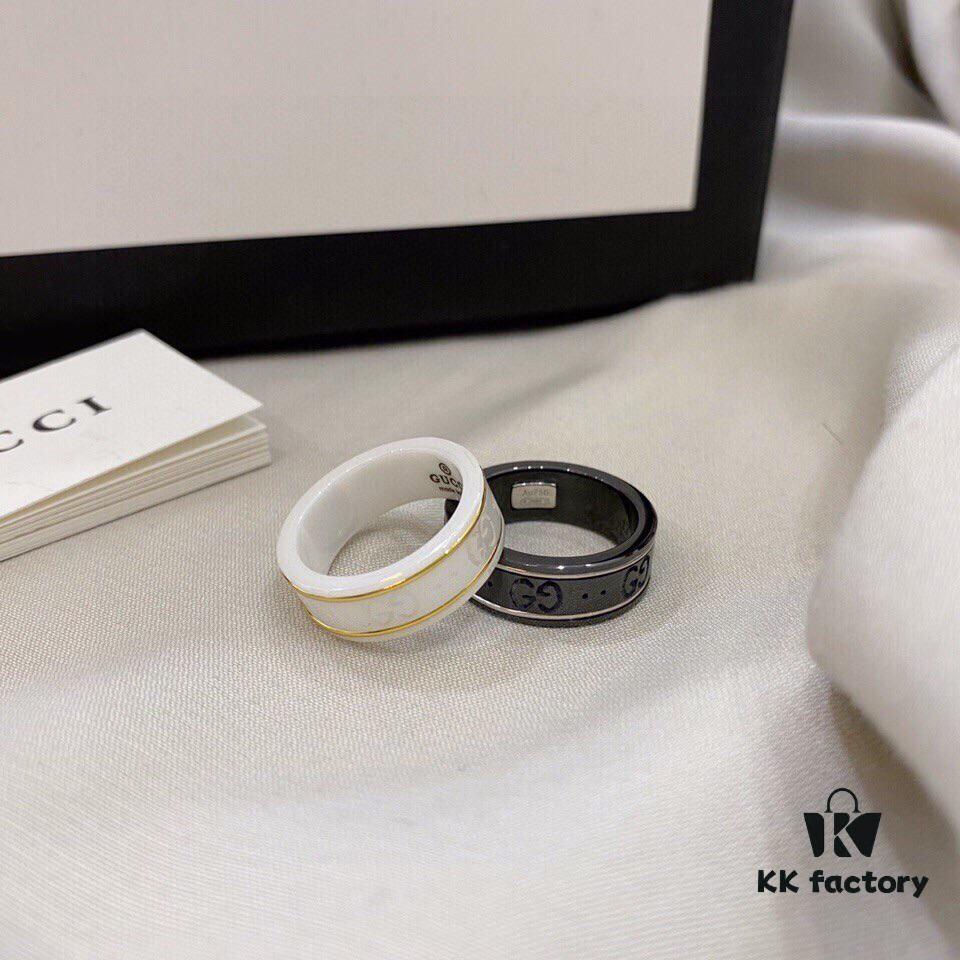 Gucci 925 Sterling Silver Double G Logo Black and White Ceramic Couple Ring