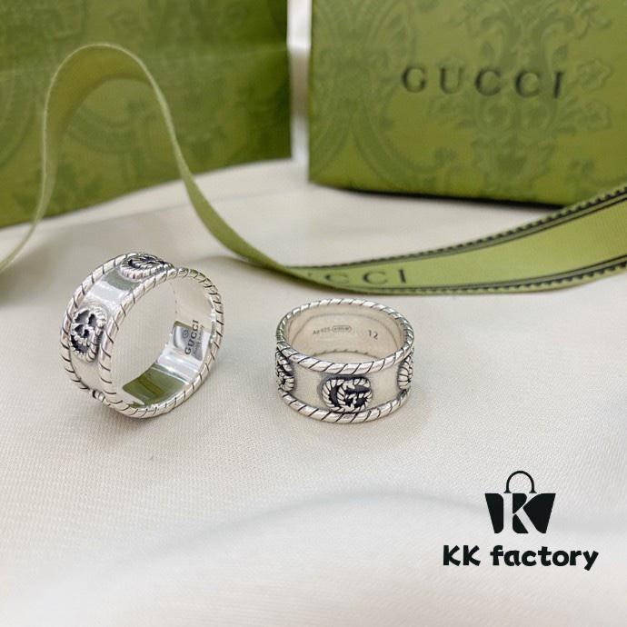 Gucci 925 Sterling Silver Double G Twisted Retro Couple Ring