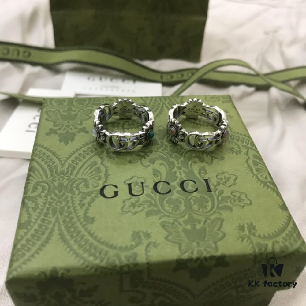 Gucci 925 Sterling Silver Double G Daisy Turquoise Pink Shell Ring